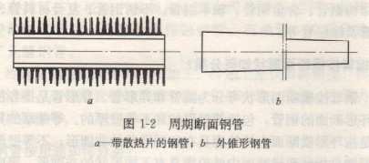 鋼管按縱斷面形狀可分為等斷面鋼管和變斷面鋼管。變斷面鋼管是指沿管長(zhǎng)方向上的斷面形狀、內(nèi)外直徑及壁厚等發(fā)生周期性或非周期性變化的鋼管。其中主要有:外錐形鋼管、外階梯形鋼管、內(nèi)階梯形鋼管、周期斷面鋼管、波紋鋼管、螺旋鋼管、帶散熱片的鋼管以及帶來復(fù)線的槍管等,如下圖所示,通常是用冷拔機(jī)或冷軋管機(jī)生產(chǎn)的。